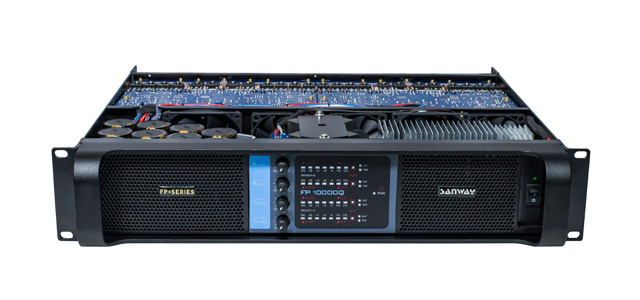 Today we will introduce the bridge mode of our Sanway FP switching power amplifier. Let's take FP10000Q for example. Sanway FP10000Q is 1350Wx4 at 8 ohms; 2100Wx4 at 4 ohms; 2500Wx4 at 2 ohms; 4CH switching lightweight power amplifier. When it is in bridge mode, its power is 2x4500W at 8 ohms bridge; 2x5000W at 4 ohms bridge.