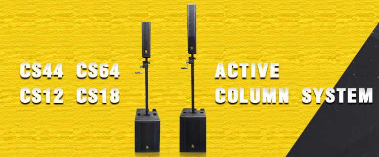 CS series active column speaker system consists of CS44 4x4 inch column pa speaker, CS64 6x4 inch column loudspeaker, CS12 single 12 inch powered subwoofer, CS18 single 18 inch active subwoofer. The active subwoofer was built in a 2 way plate amplifier with DSP that can power the passive CS44 or CS64.