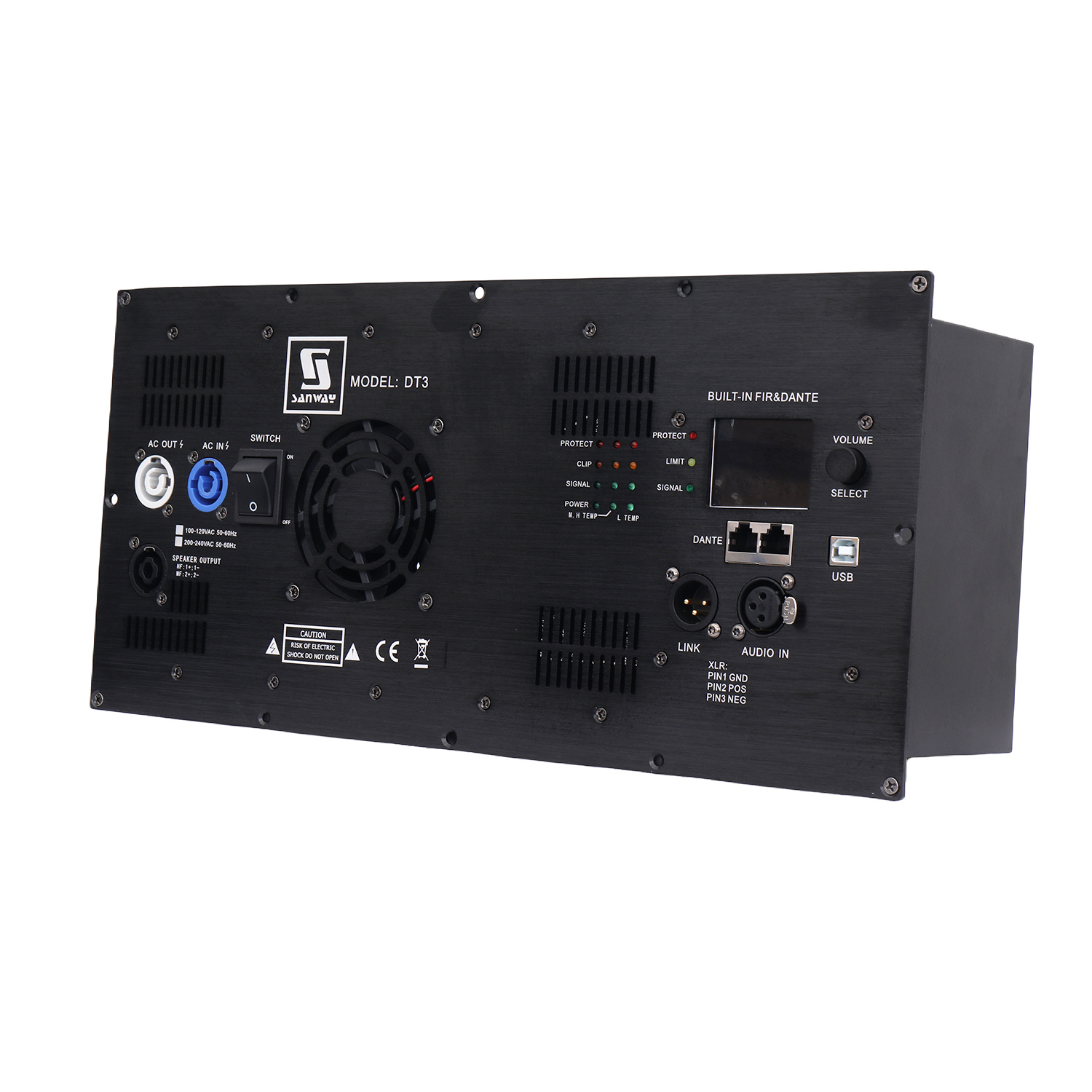 Elevate your sound reinforcement setup with the DT3 3-Channel DSP Power Amplifier, a cutting-edge, FIR filter, Dante-integrated solution engineered for high-performance PA systems. Combining robust 3600W peak power (1800W + 900W + 900W @ 4Ω), agile DSP control, and ultra-compact design, this amplifier module delivers unmatched versatility for live sound, touring rigs, and permanent installations.